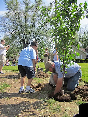 On April 30th INASLA assisted the Columbus Parks and Recreation Department in their Arbor Day Tree Planting Ceremony at the Foundation for Youth (FFY). Over 30 children spent time learning about the benefits of trees as well as the profession of landscape architecture. Three cherry trees were planted adjacent to the FFY Garden that supplies a variety of vegetables and flowers to the children throughout the summer. The cherry trees will add to the variety offered. The children tend to the garden throughout the summer with the season culminating with the sale of homeade salsa from the garden produce. The garden and tree planting are wonderful examples of positive ways to encourage children to spend time outdoors! Each child was given a small tree sponsored by ASLA to plant in their yard when they return home.